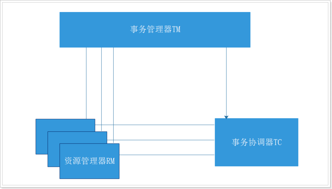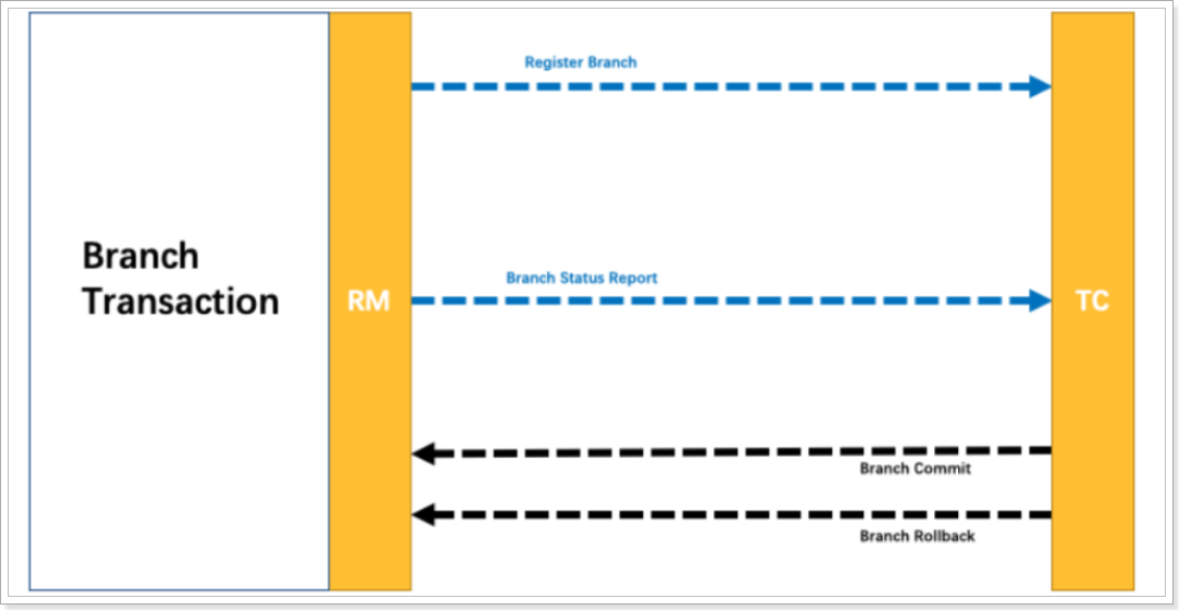 资源管理器Resource Manager (RM):控制分支事务,负责分支注册、状态汇报,并接收事务协调器的指令,驱动分支(本地)事务的提交和回滚。