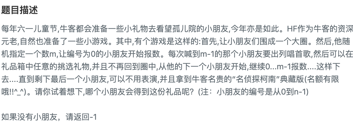 public int LastRemaining_Solution(int n, int m) {