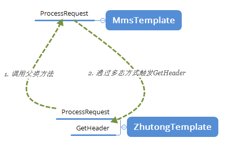 仔细看一下这个xmind图,ZhutongTemplate类调用的MmsTemplate的方法,MmsTemplate在执行的时候再调用ZhutongTemplate的方法,前者叫调用,后者叫回调,如果还不明白,那前者叫送礼,后者叫回礼。。。 对,既然在以前是用多态制造回调,那我是不是可以直接使用C#中的委托函数更简单粗暴呢?