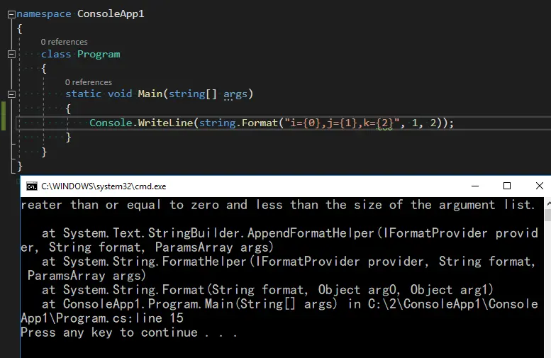 比如这里的 {0},{1},{2}.... 不能写成了 {0},{0},{2},造成结果的重复输出。