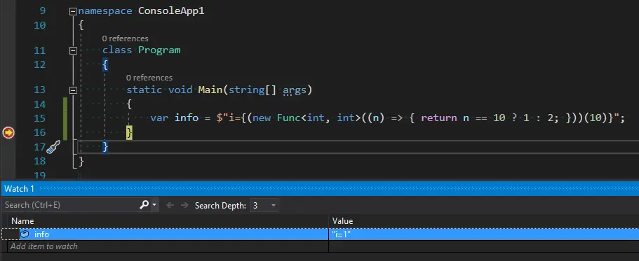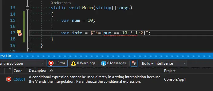 string.format也是曾今模仿C语言留下来的历史遗留问题,如今C#6.0出来了这个内插字符串完美的解决了这三个问题,简直不要太兴奋,接下来把文章开头处改成内插版。