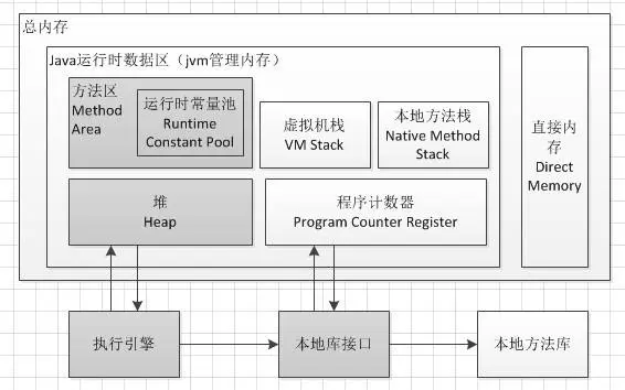 首先强调一下不是java内存模型,jvm内存模型和java内存模型是两个不同的概念。JVM 内存区域主要划分为线程私有区域【程序计数器、虚拟机栈、本地方法区】、线程共享区 域【JAVA 堆、方法区】、直接内存。如下图,jvm内存区域是java虚拟机规范定义的区域。最后具体怎么去实现还是要区分虚拟机。