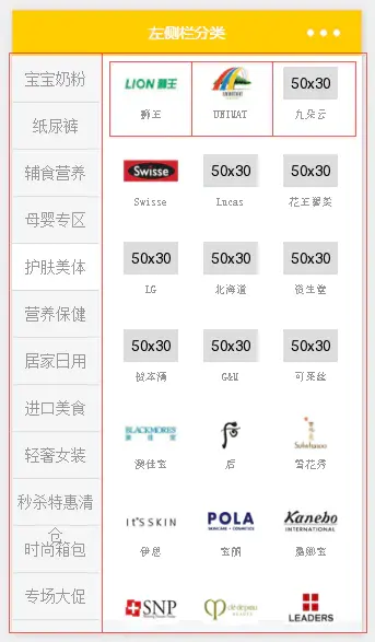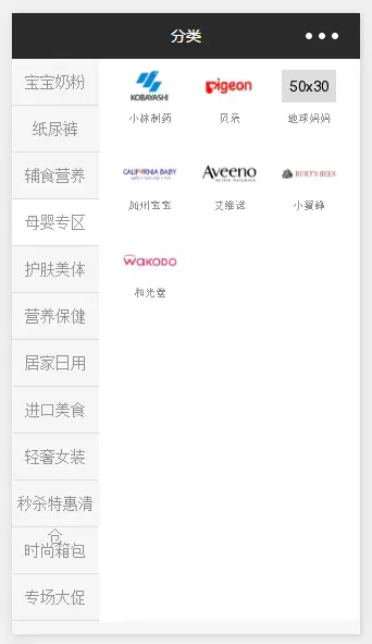 分类页面可以给用户快速找到相关的商品,下面以侧栏分类为例,如下图