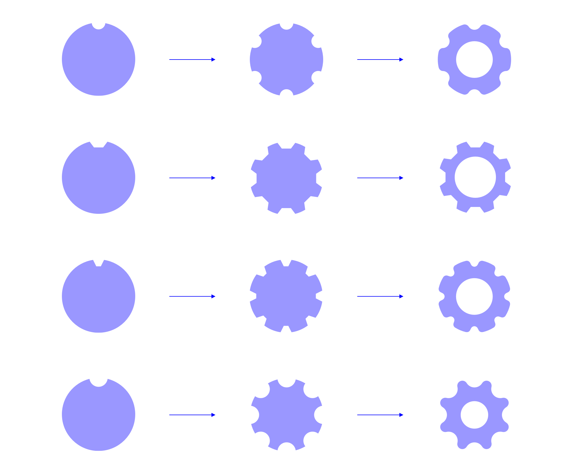 这种简单的方法能很方便地生成带有尖齿的齿轮。