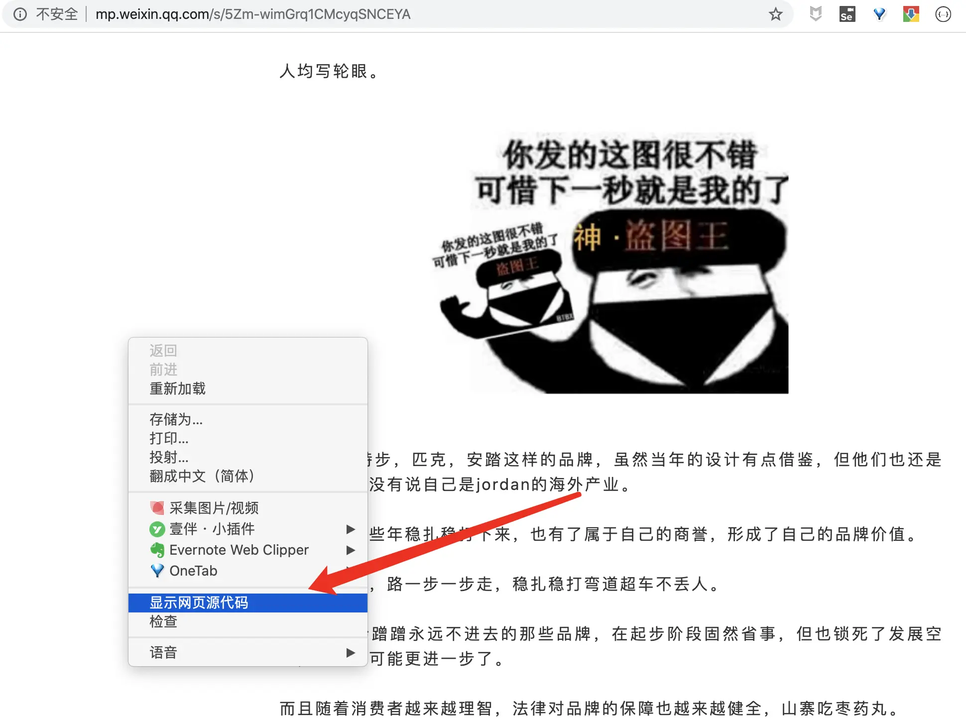 首先。我们要学会爬取一篇文章里面所有的表情包或者图片。比如我们指定一篇文章,打开文章,查看页面源代码。