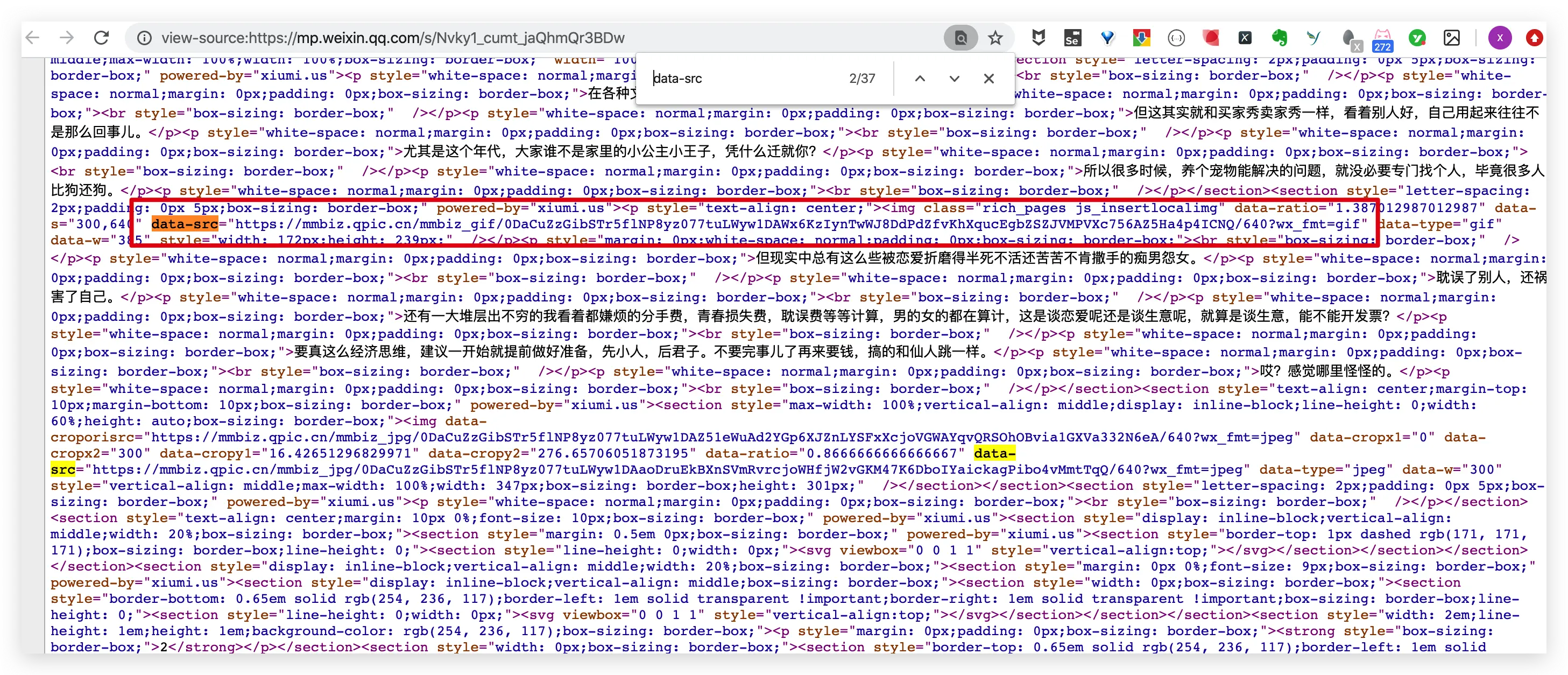 通过简单查找,我们就可以看到。文章的图片都在date-src后面。