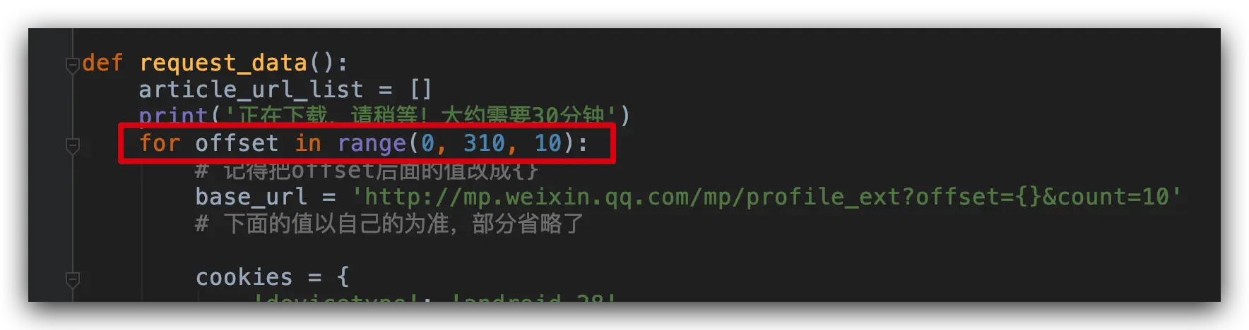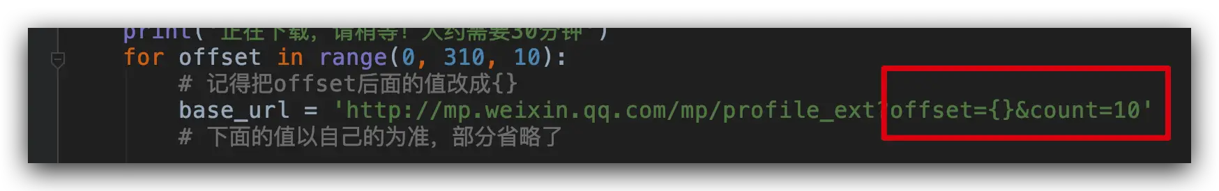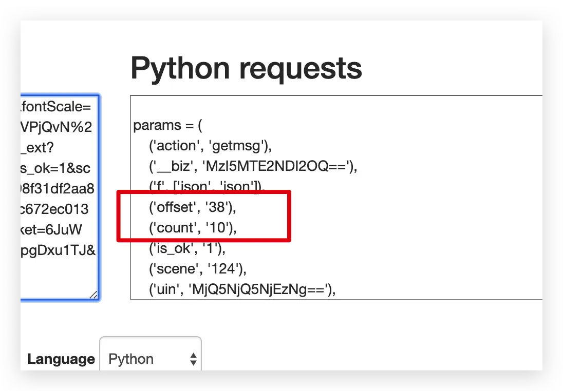 分析请求数据我们发现。链接里面除了 offset 是变化的,其他都是不变的。