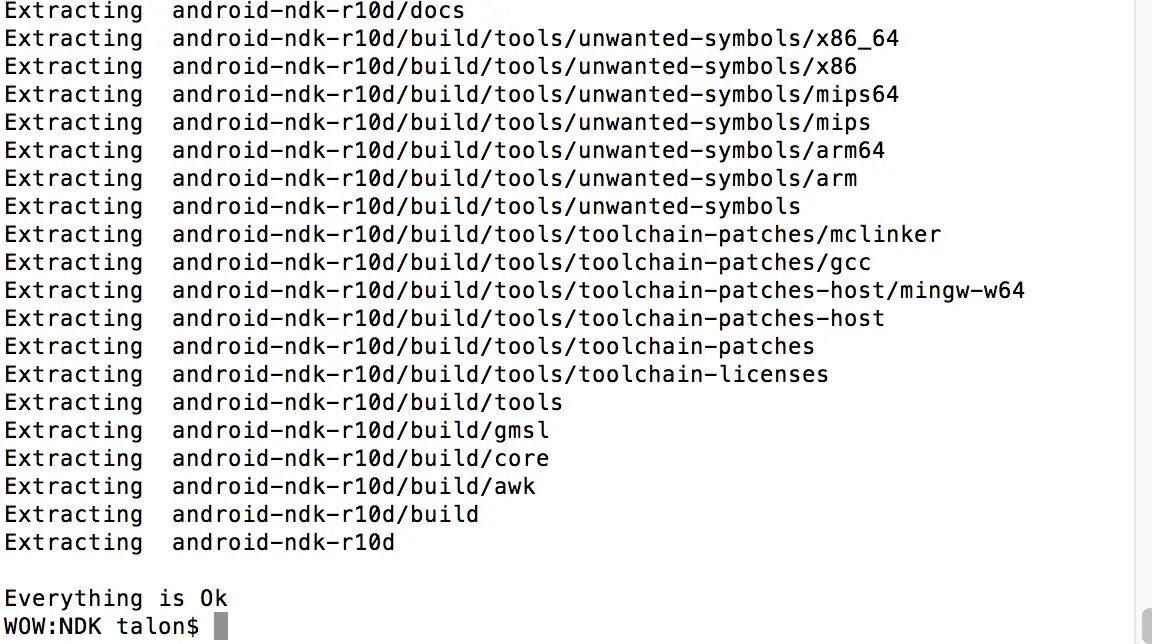 (2)执行解压命令 ./android-ndk-r10d-darwin-x86_64.bin