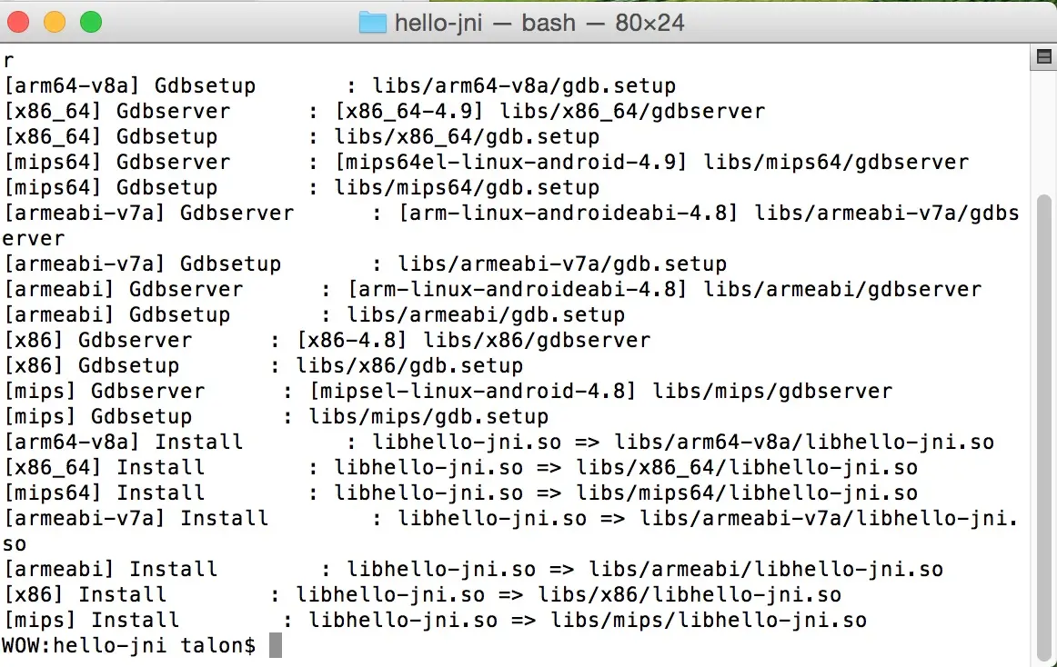 (1) cd 命令进入下载后ndk存放的目录 cd /Users/talon/Desktop/eclipse/androidStudio/NDK