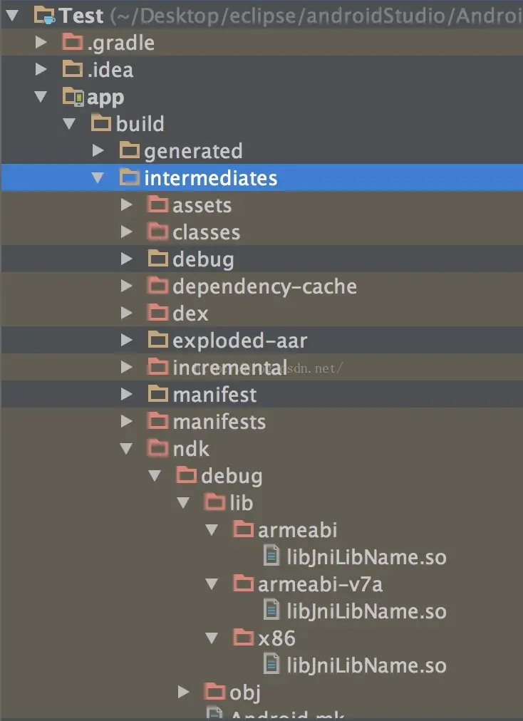 2,构建项目成功后。注意Test\app\build\intermediates\classes\debug 目录。
