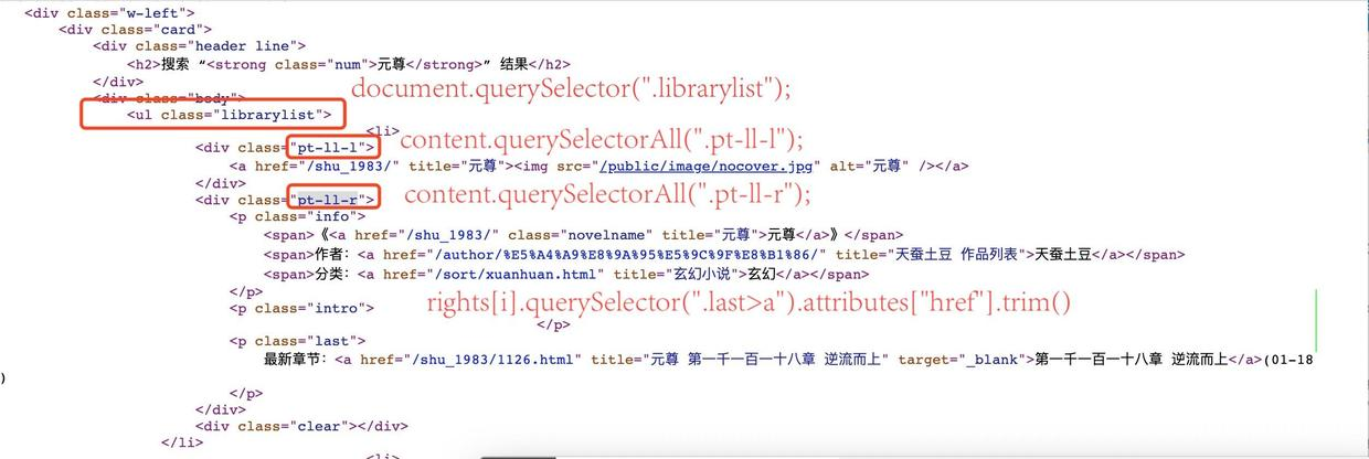 lefts[i].querySelector("div>a").attributes['href'].trim());//获取书URL