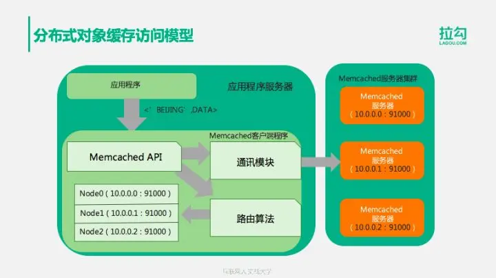 以 Memcached 服务器集群为例,我们来看一下分布式对象的缓存模型。