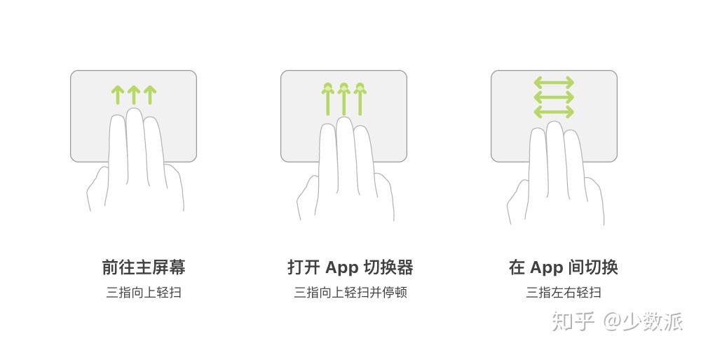 与鼠标相比,Magic Trackpad 的主要优势在于多任务相关操作更加方便。例如,同样是打开 App 切换器,使用 Magic Trackpad 时只要三指向上轻扫并停顿,之后还可以双指向上将某个 app 的缩略图卡片「扫出」后台,过程流畅且自然。类似地,在 app 间切换只要三指向左或向右轻扫。