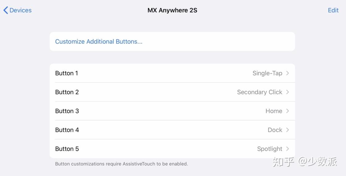 但另一方面,第三方鼠标却有一项 Magic Mouse 没有的功能加成——自定义按键。如今,很多蓝牙鼠标都设计有多个额外按键,而从 iOS 13 开始,用户就可以为这些按键任意指定功能。由此,多键鼠标不仅可以获得本没有专用手势的回到桌面、显示 Dock、打开 Spotlight 搜索等功能,还可以实现调整音量、截图甚至运行捷径等操作,反而比没有额外按键可以定制的 Magic Mouse 更为强大。(相关选项位于「设置」>「辅助功能」>「设备」下的「自定义按键设置」,具体步骤和功能可以参考这篇文章。)