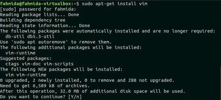 $ sudo apt-get install vim然后我们运行以下命令来查看安装好的 Vim 编辑器的版本。