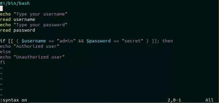 if [[ ( $username == "admin" && $password == "secret" ) ]]; then