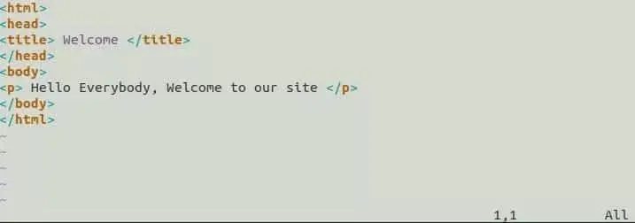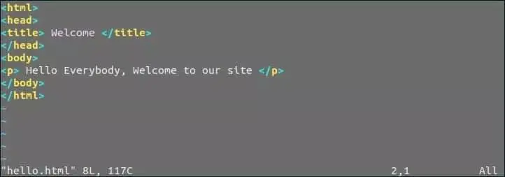 </html>我们首先运行以下命令在 Vim 中打开这个 html 文件。