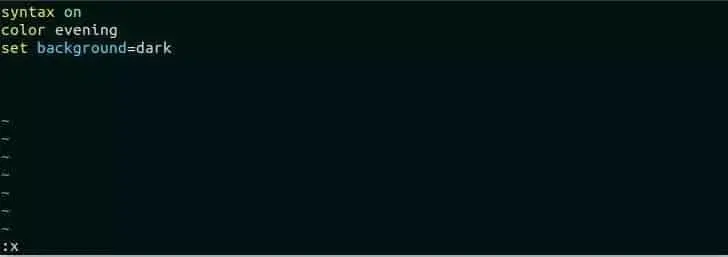 如果想要永久设置特定的配色方案及背景,那么我们需要再次打开 .vimrc 文件并添加以下命令文本。下面配置的是夜晚配色方案,会将背景颜色设置为深色。