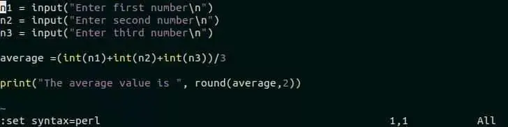 这是一个 Python 文件,但如果我们想以 Perl 的语法风格来显示,要怎么操作?我们只需输入 :set syntax=perl ,按 Enter 键就可以了,效果如下图所示。