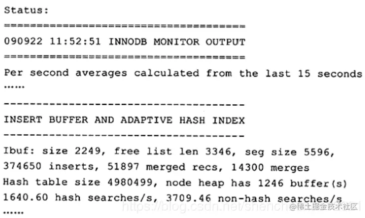 现在可以看到自适应哈希索引的使用信息了,包括自适应哈希索引的大术使用情况、每秒使用自适应哈希索引搜索的情况。需要注意的是,哈希索引只能用来搜索等值的查询,如: