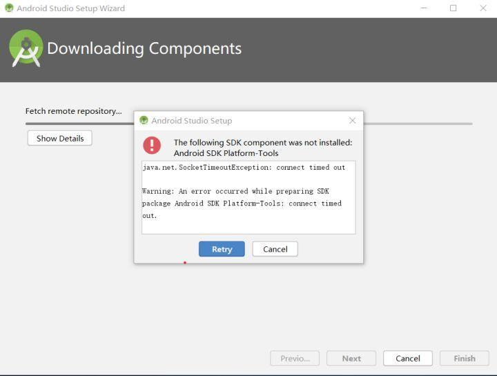 *20.如果下载过程中出现如下提示,直接点解“Retry”就可以恢复了。