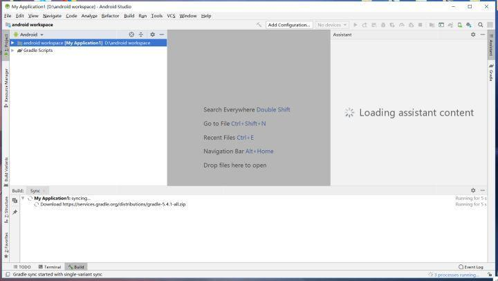 25.首次进入页面比较慢,需要耐心等待,他还会自动下载gradle(下边的提示板里会不停的转圈,等待他转完)。