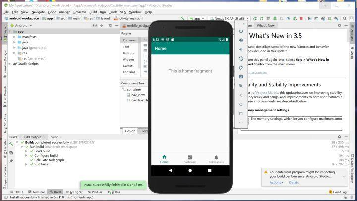 28.当出现如图所示的模拟器的时候,表示Android Studio已经安装完成。