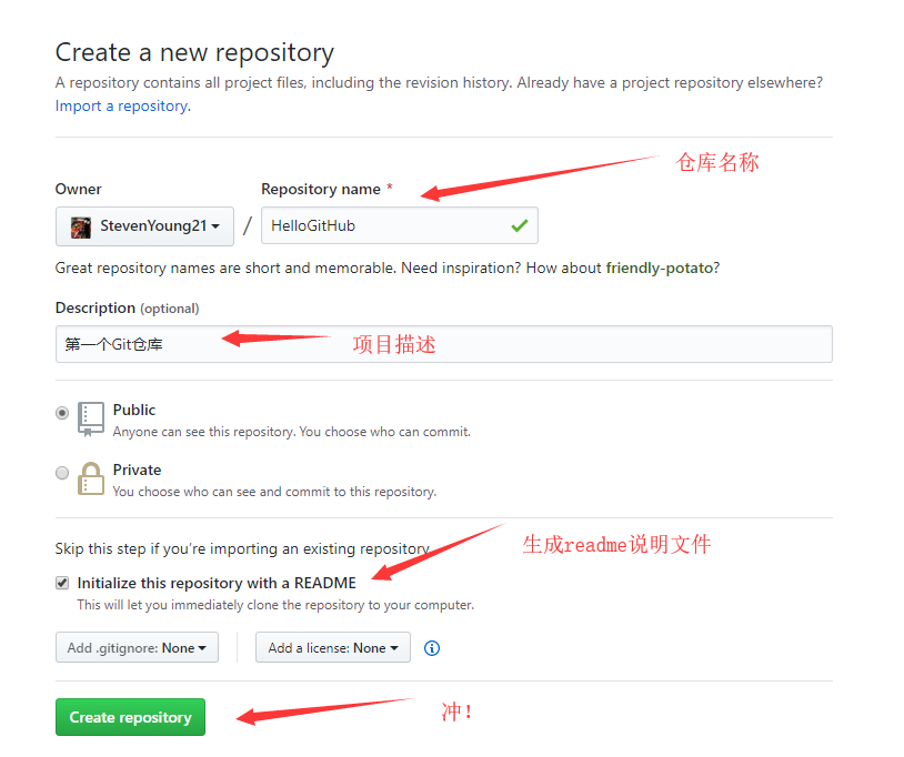 - 在GitHub创建一个仓库
