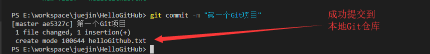 在工作区创建了一个helloGitHub.txt文件,分步提交至GitHub仓库。