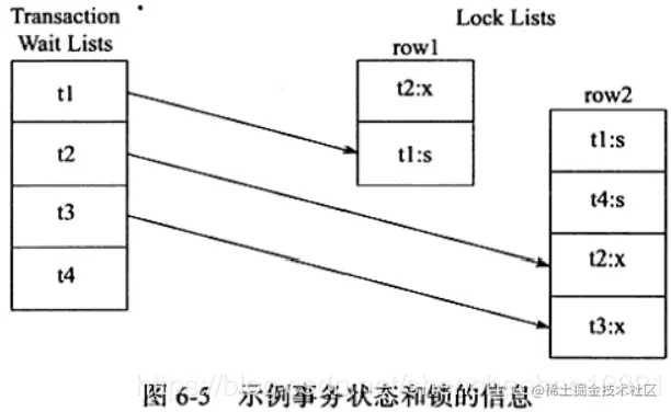 下面来看一个例子,当前事务和锁的状态如图所示。