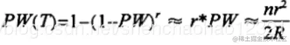事务是由r个操作所组成,因此事务发生等待的概率PW(T)为: