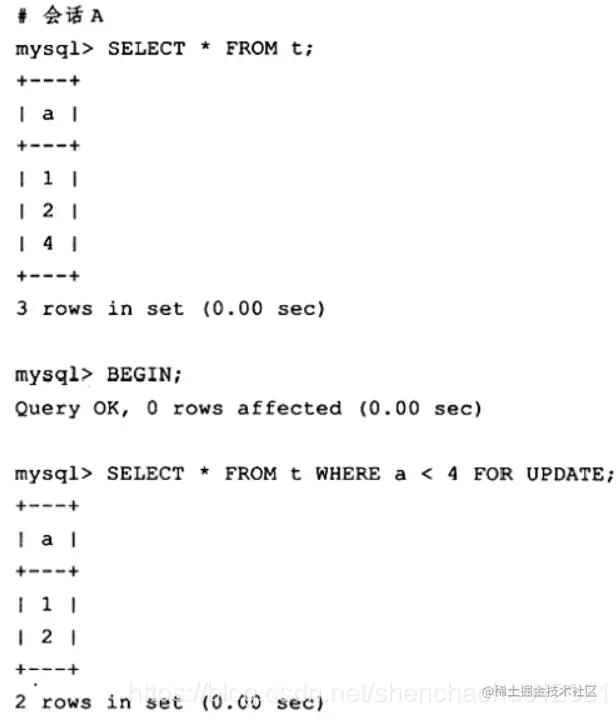 SELECT * FROM t WHERE a < 4 LOCK IN SHARE MODE