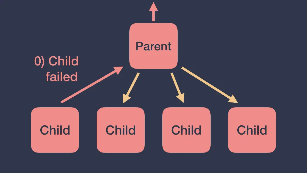 在这种情况下,如果Child 1失败,scope和Child 2都不会被取消。