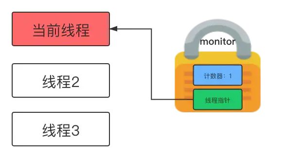 任何对象都有一个monitor与之相关联,当且一个monitor被持有之后,他将处于锁定状态。线程执行到monitorenter指令时,将会尝试获取对象所对应的monitor所有权,即尝试获取对象的锁;