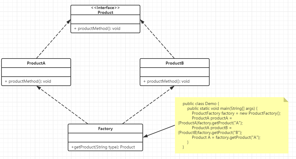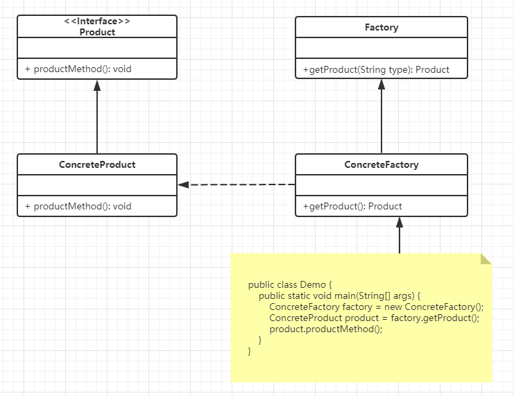- ConcreteProduct(具体产品): 简单工厂模式创建的目标,所有被创建的对象都是某个具体类的实例,它要实现抽象产品中声明的抽象方法