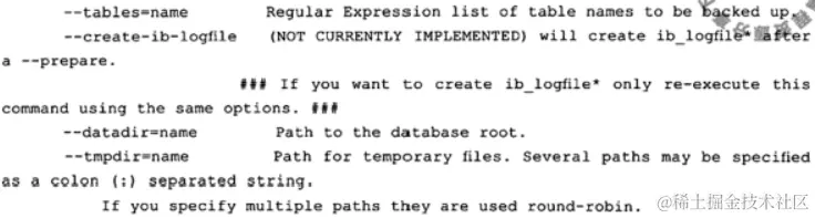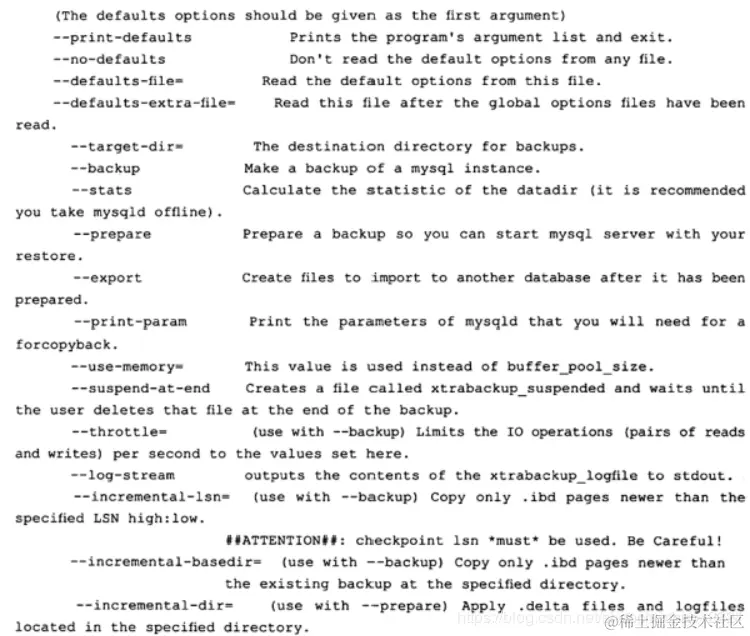 xtrabackup命令的可选参数如下: