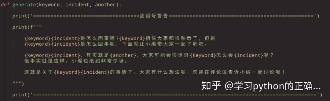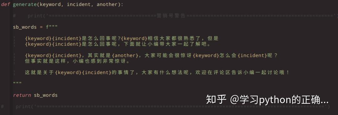 其实这个用 Python 实现非常简单,根据用户输入的内容,简单替换一下关键字就可以了,我随手写了一下生成方法: