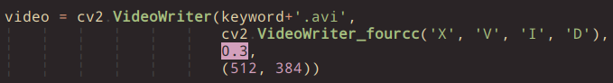 这里定义了我们要合成的视频属性,比如帧数,视频像素等,其中我设置的 0.3 主要是让视频不要太快: