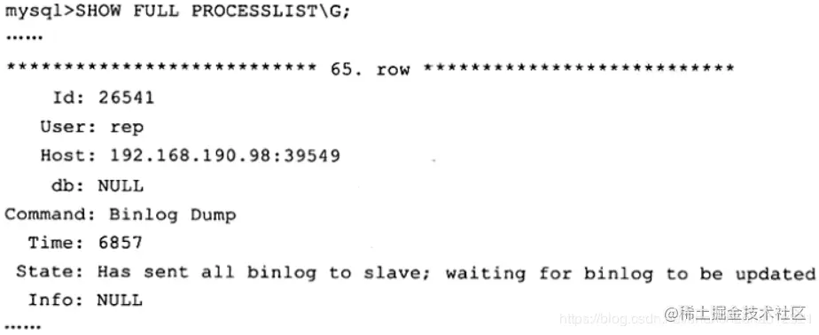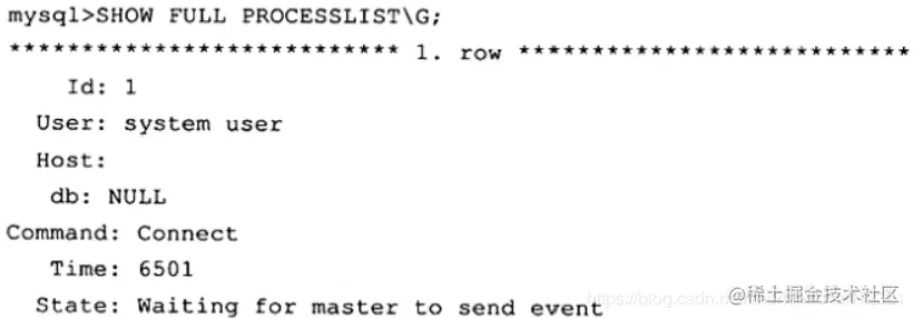 显示当前IO线程的状态,上述状态显示的是等待主服务发送二进制日志