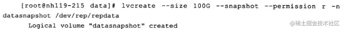 命令 Ivcreate可以用来创建一个快照,--permission r表示创建的快照是只读的: