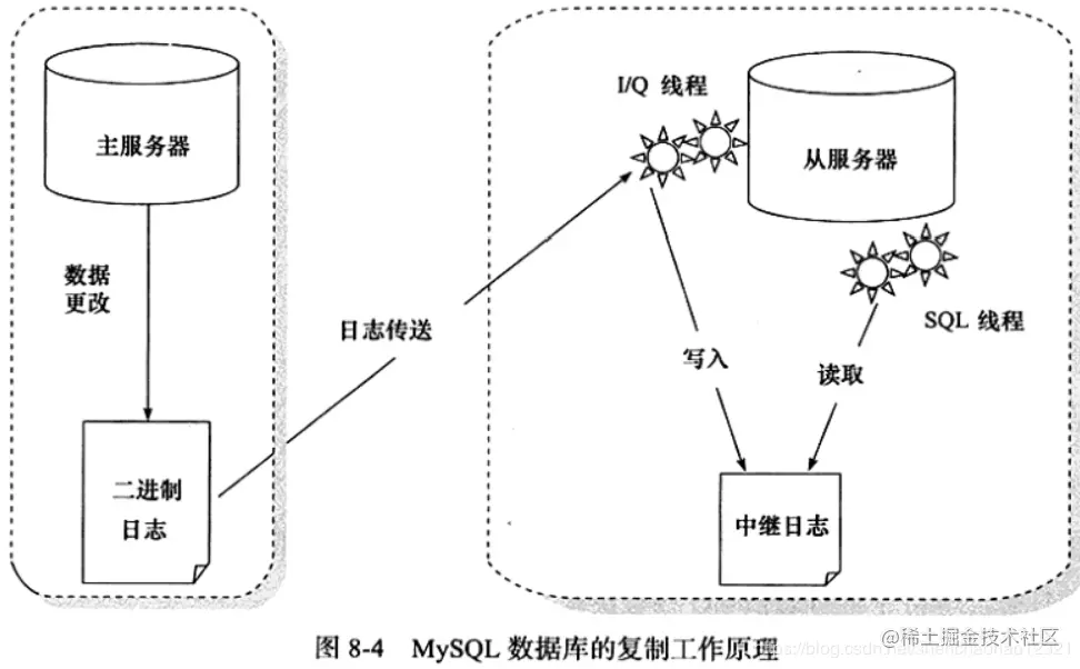 从服务器有2个线程,一个是IO线程,负责读取主服务器的二进制日志,并将其保存为中继日志;另一个是SQL线程,复制执行中继日志。 MySQL4.0版本之前,从服务器只有1个线程,既负责读取二进制日志,又负责执行二进制日志中的SQL语句。这种方式不符合高性能的要求,目前已淘汰。因此如果查看一个从服务器的状态,应该可以看到类似如下内容:
