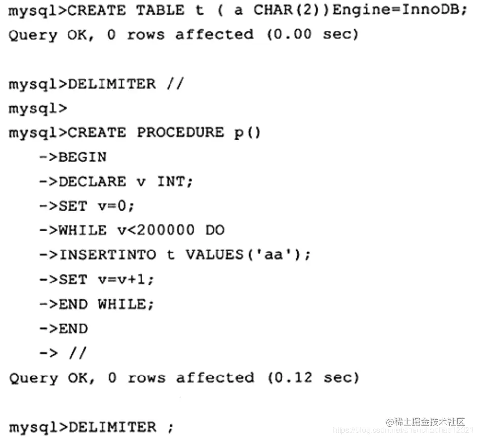首先创建一个向表t插入20W记录的存储过程,并在 Write Back和 Write Through的设置下分别进行测试,最终测试结果如表9-2所示。