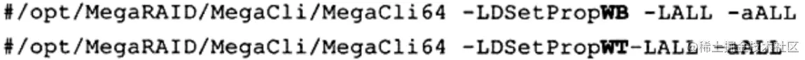 通过上面的结果可以发现当前开启了RAID卡的 Write Back功能,并且当BBU有问题时或在充电时禁用 Write Back功能。此外,这里还显示了不需要启用RAID卡的预读功能,写入方式为直接写入通过下面的命令可以对当前的写入策略进行调整: