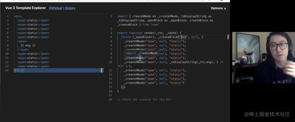- vue3通过编译器和运行时的结合,只对非静态节点进行替换,性能提升很大,