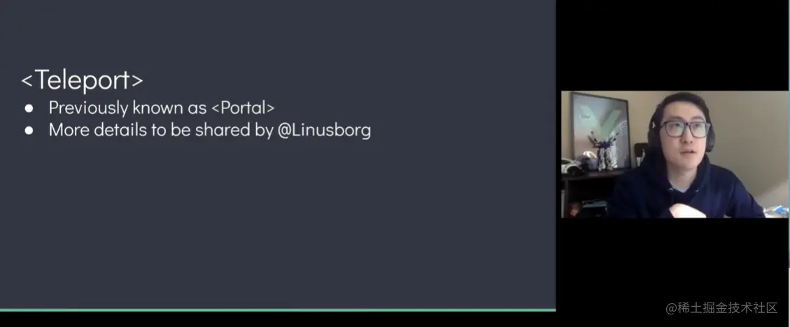 对标的react的portal,但是因为一些命名冲突问题所以起这个名字。chrome可能增加一个protal的原生API,(chrome啥时候良心发现支持一下数据驱动呗~)