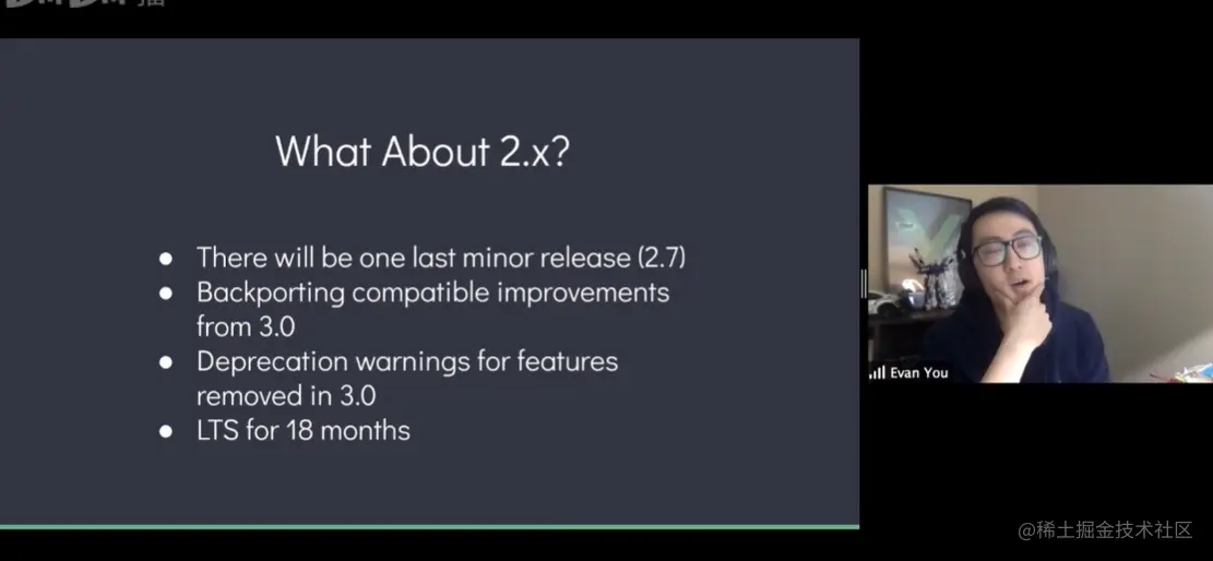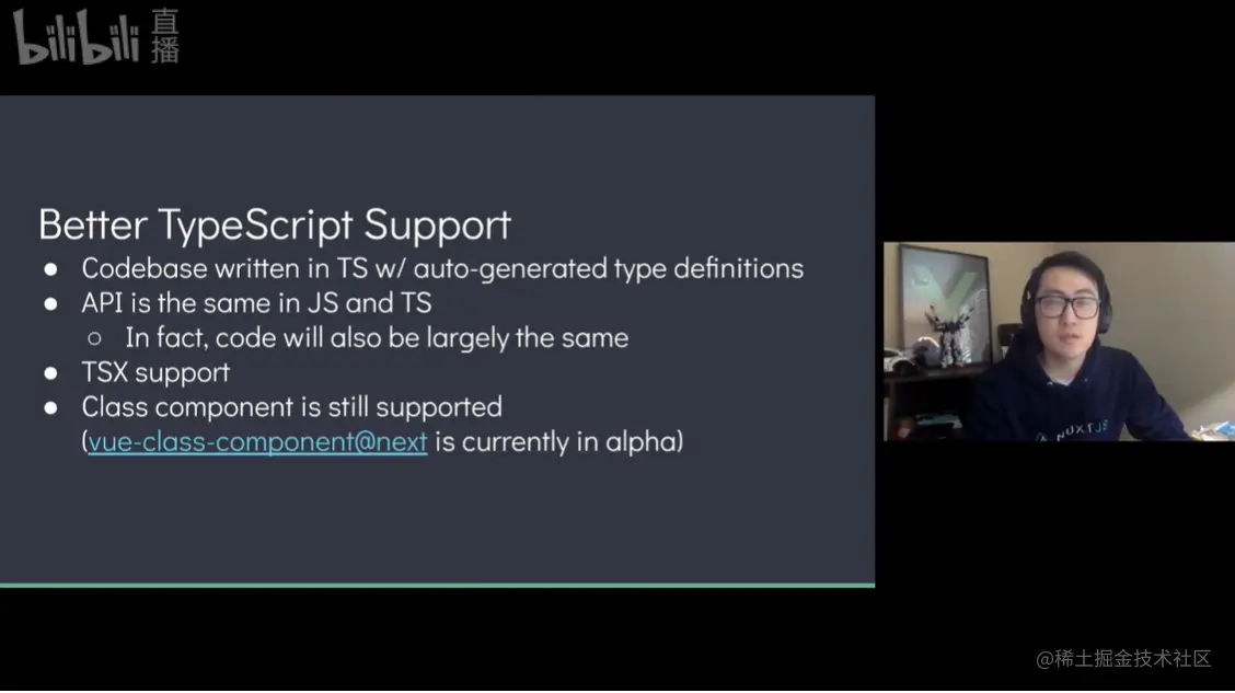 - 加强TS支持(尤大说不意味着你就得用ts,想用啥还是用啥就可以,他并不认为ts能够完全取代JS,弱类型语言的简便性是其优势,在小型项目里)