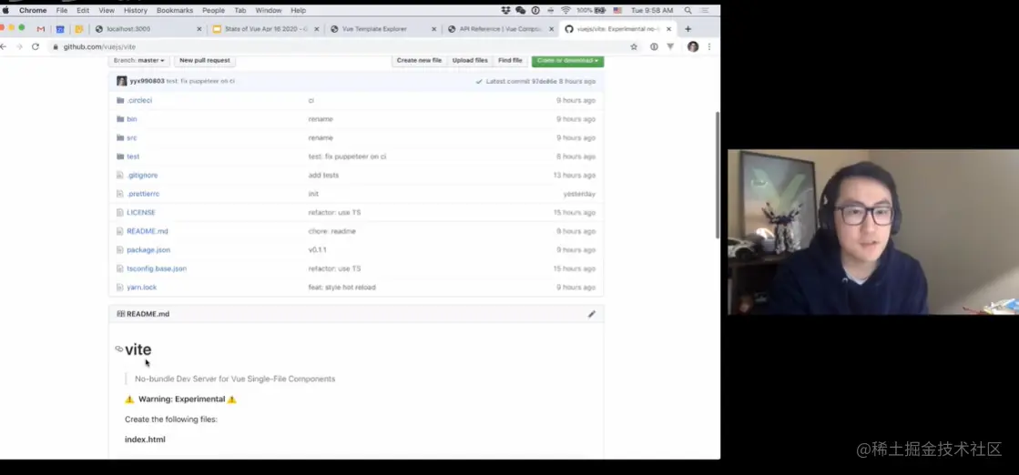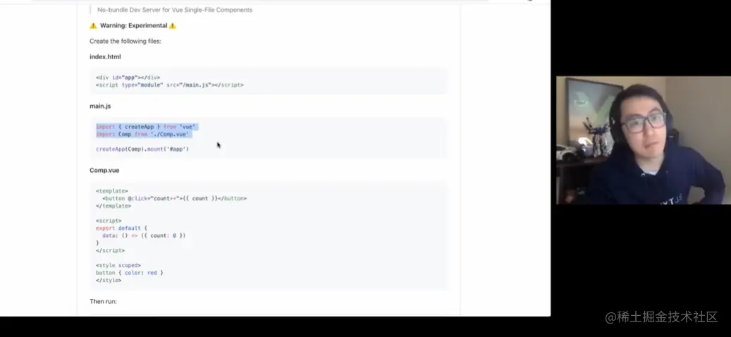 尤雨溪现在正在做的:vite:一个http服务器。不需要打包编译,起一个服务器就可以写vue文件了,并且支持模板和热更新,热更新不需要整个打包(webpack项目太大时更新特别慢)。