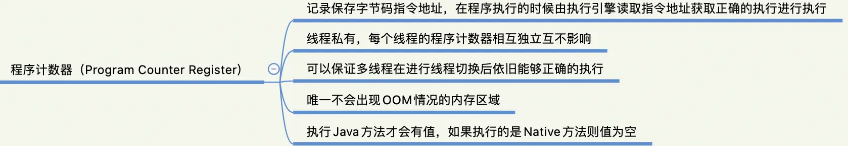 程序计数器相对来说在整个运行时数据区属于比较简单的数据区域。主要就是如上图的几点内容。