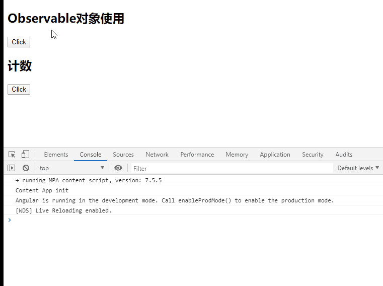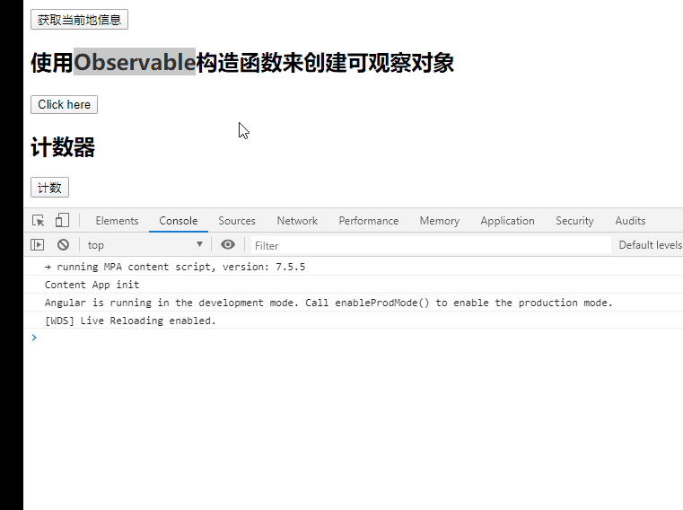 启动该项目,打开页面并点击按钮,出现这样的结果:
