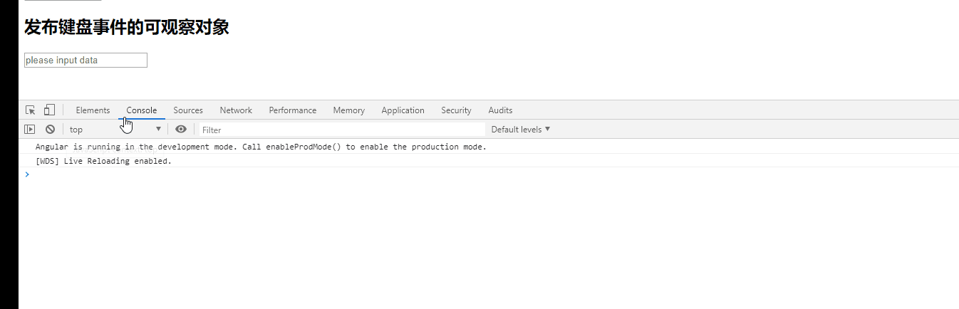 从结果可以看出,你可以在 inputFunc 方法中创建可发布 keydown 事件的可观察对象以及 keyup事件的可观察对象。
